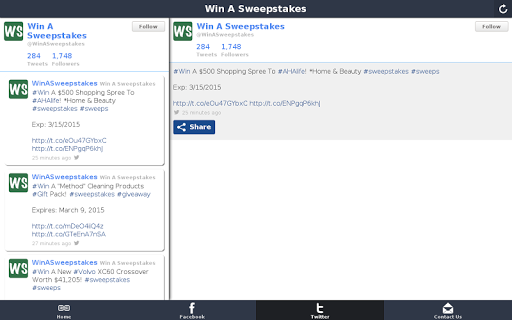 Learn How to Win on Facebook Index Where Can I Find Facebook Sweepstakes to Enter Join 50,000 Sweepers who enjoy entering sweepstakes and follow Sweeties Sweeps Facebook page. When you follow Sweeties Sweeps, you will be notified ... Visit Document